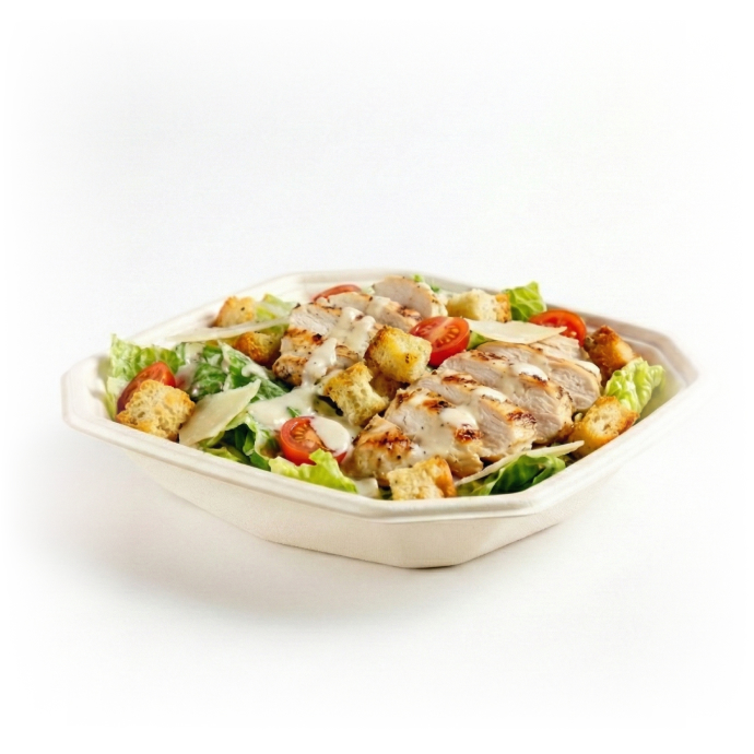 Insalata, pomodorini, formaggio, crostini, pollo, salsa caesar